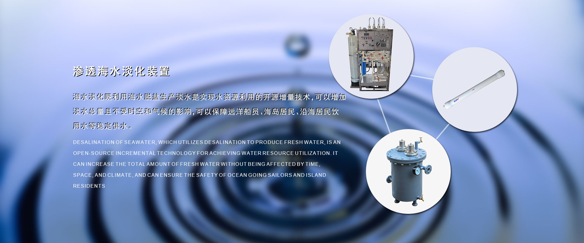 在過去的17年里我們?yōu)榇疤峁┖KO(shè)備解決了因船的續(xù)航長而不能解決的淡水問題,全球的水資源越來越少,我們以改善遠(yuǎn)洋船員、海島居民的生活水資源為已任,以科技創(chuàng)新、誠信經(jīng)營為核心競爭力。